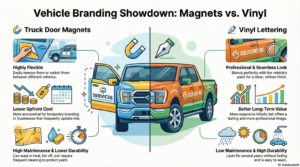 Key Takeaway: Truck door magnets are more economical, while vinyl lettering ensures long-term value.